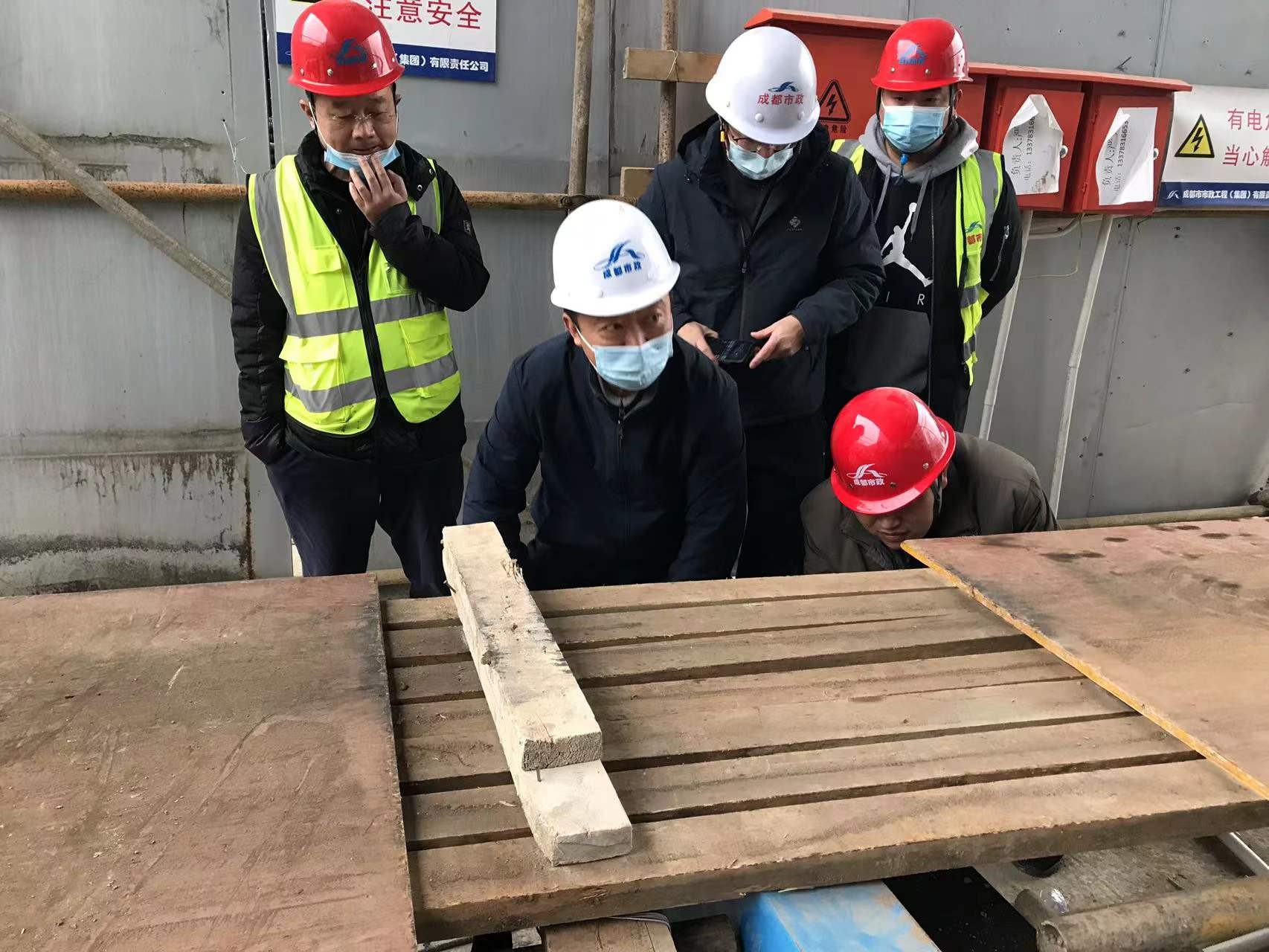 12月6日,成都市市政工程(集團(tuán))有限責(zé)任公司董事長(zhǎng)付錦濤蒞臨建行項(xiàng)目開展安全檢查工作,(集團(tuán))公司監(jiān)事會(huì)主席都斌、董事會(huì)秘書鐘小梅陪同檢查。
